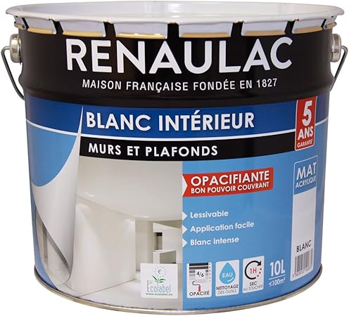 Peinture blanc interieur sejour et chambre luxens mat 10l. Découvrez nos nombreuses gammes de peinture acrylique l'avantage avec les peintures acryliques c'est qu'elles s'appliquent sur tout support. Il existe différents types de supports sur lesquels vous pouvez peindre et étaler vos couleurs de peinture acrylique. 10 m2/l rendement par pot (en m²) :